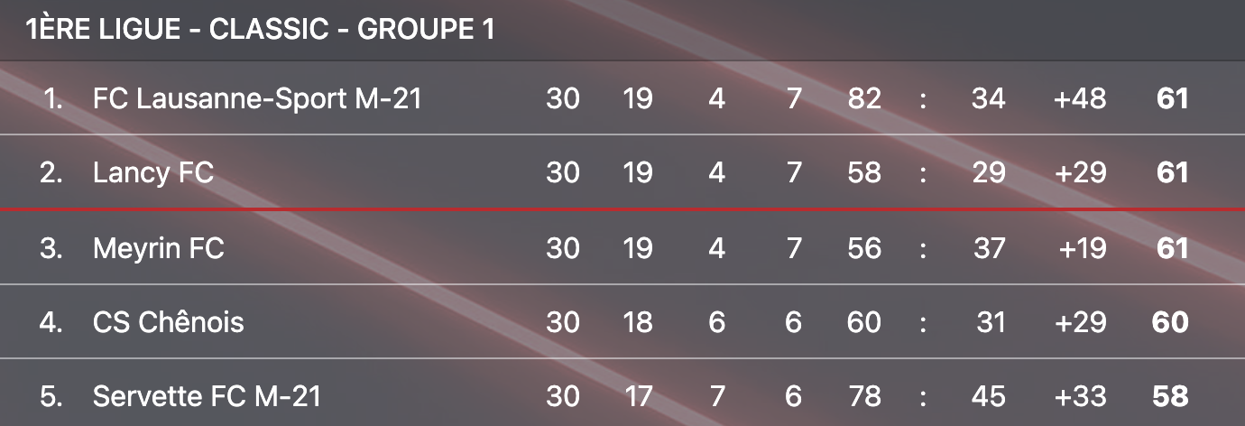 Avant la rencontre de la 30ème et dernière journée contre Köniz, la donne était simple pour les Lausannois. Virtuellement sur le podium, et donc finalistes, ils devaient gagner pour s’assurer de ne pas se faire coiffer au poteau par l’une ou plusieurs des 4 autres équipes (Lancy, Chênois, Meyrin, Servette) encore en course pour le Top-3. Devant un public venu assister gratuitement à la rencontre, ils ont conclu un exercice par moments compliqué plus qu’en beauté. Avec comme cerise sur le gâteau, la première place du groupe.