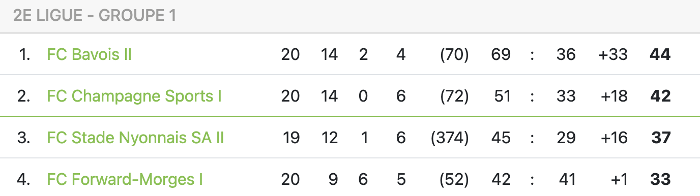 Au classement, Forward-Morges a sans doute concédé la défaite de trop, puisque l’équipe se retrouve désormais à 9 points de la deuxième place détenue par Champagne, avec plus que 12 points en jeu. Les Stadistes remportent eux un nouveau duel de haut de tableau et restent à 5 points de Champagne, avec un match en moins. S’il entend réussir à accrocher le Top-2, le FC Stade Nyonnais II n’aura pas le droit à l’erreur. Et ce dès samedi prochain à 19h face au FC Gland.