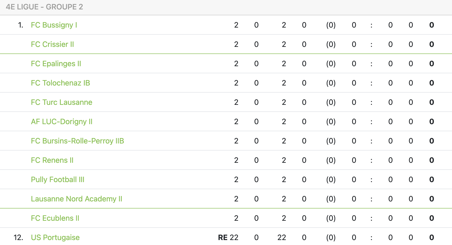 Suite au retrait de l’US Portugaise, une seule équipe de plus terminera sous la barre dans le groupe II de 4ème ligue.