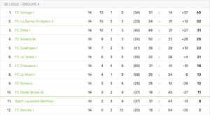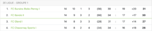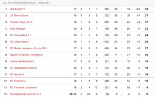 Déjà à la peine depuis la reprise, les joueurs de Dominique Coelho ont subi une défaite lourde de conséquence sur la pelouse de Pully (6-3). Menée 2-0 à la mi-temps puis 4-0 en début de seconde période, la formation de la Côte ne s’est jamais relevée. Avec ce revers, elle compte désormais cinq points de retard sur USI Azzurri, qui n’a pourtant pas pu faire mieux que match nul sur la pelouse d’UGS (0-0). Champagne a concédé sa troisième défaite consécutive à Collex-Bossy (4-1), et ne compte désormais que trois points d’avance sur Echichens, premier relégable.